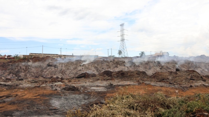 Equipes seguem no rescaldo após fogo atingir área de resíduos na terça-feira (2)